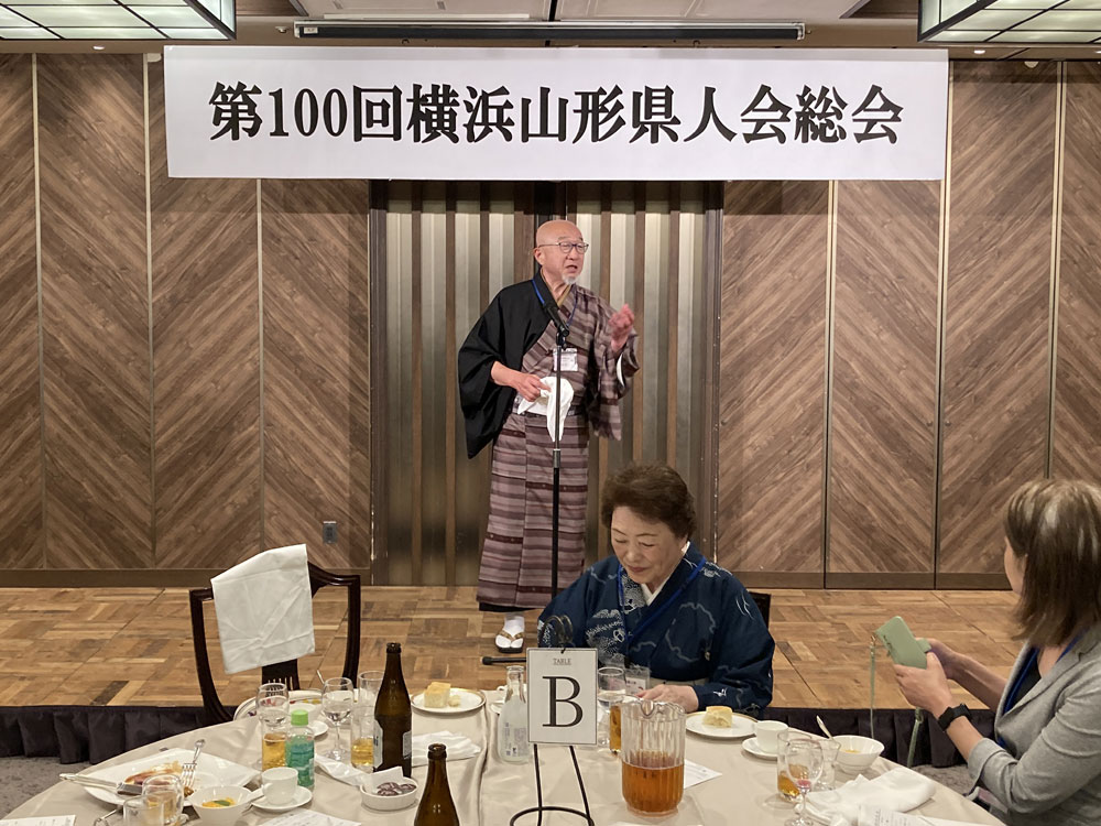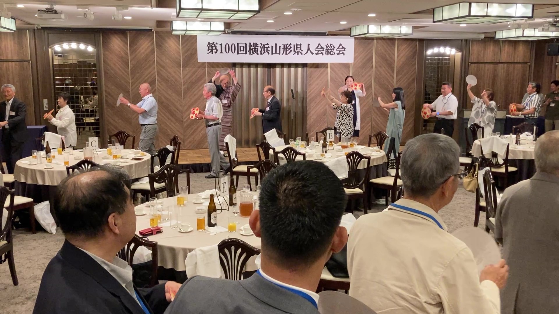令和6年度横浜東北六県人会総会(当番県:山形県)が10月5日(土)ホテル・ザ・ノットヨコハマで開催され、秋田県、山形県、福島県、宮城県、岩手県、青森県の各県人会の来賓・会員約130名が出席しました。横浜山形県人会も佐々木さやか参議院議員、柳田一弘東京青森県人会会長、会員、総勢15名出席しました。 当番県の山形県人会菊地会長より、年1回の総会ふるさと東北六県人会を偲び語らいの場です大いに楽しんくさいと挨拶、来賓紹介挨拶後乾杯! 懇親会では出席者全員よる山形名物花笠踊り、カラオケ大会では横浜青森県人会監事高山正男さんが手振り身振りで1曲披露、大いに会場をわかせて下さいました。